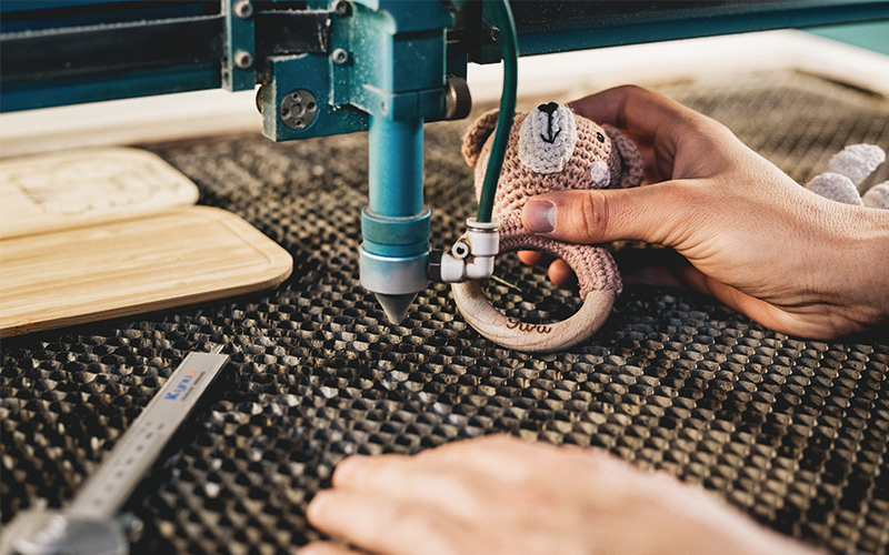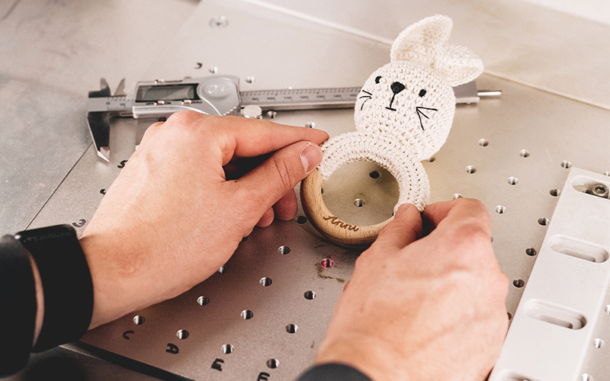 Mit Flächeneffizienz kennt sich Christoph Knippschild als Logistikplaner bei LOGSOL aus. Individuelle Lösungen für branchenspezifische Herausforderungen entwickelt er gerne spielerisch – wie bei Wunderwunsch im sächsischen Coswig. Von der Kuscheldecke mit eingesticktem Babynamen bis zur personalisierten Schultüte fertigen die 50 Mitarbeitenden in der Manufaktur viele besondere Kinderprodukte. Innerhalb von fünf Jahren ist das Start-up zum Scale-up herangewachsen, der Arbeitsbereich erinnert an ein überfülltes Kinderzimmer: „Lager, Logistik, Verpackung, Produktion sind momentan ungeordnet. Es gibt wenig Potenzial für weiteres Wachstum“, sagt Co-Gründer und -Geschäftsführer Toni Lösche. In technologiespezifischen Abteilungen wie Lasergravur oder Digitaldruck werden Produkte hergestellt und für den Versand vorbereitet. Direkt an den Maschinen befinden sich Flächen für Paletten oder Kleinteile, die aus einem externen Kommissionierlager zugeführt werden. Weil das System seine Kapazitätsgrenzen erreicht hat, beauftragte Wunderwunsch LOGSOL, Abläufe, die mit Leidenschaft entstanden sind, zu ordnen und Potenziale freizulegen.